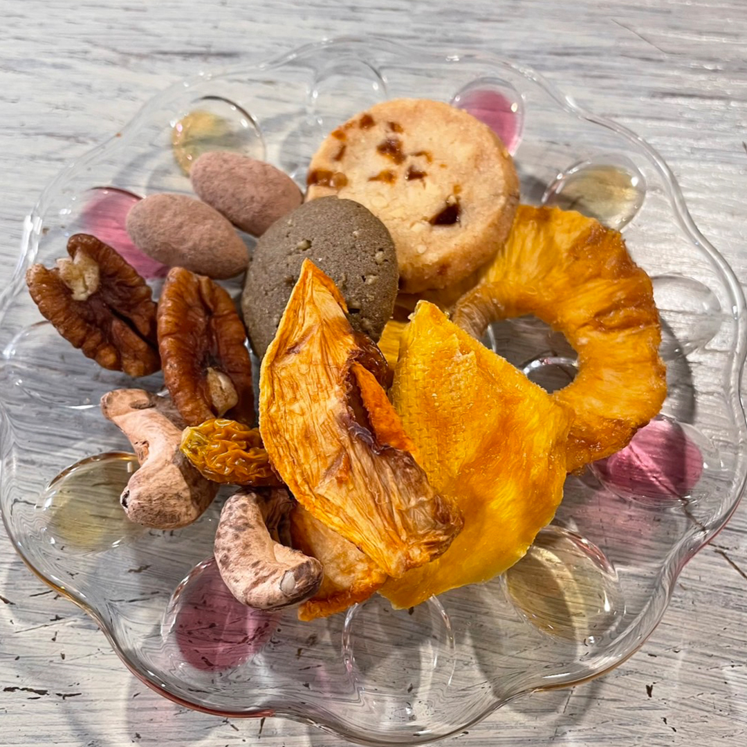 お菓子のセットとハーブティを頼み店内のカウンターで